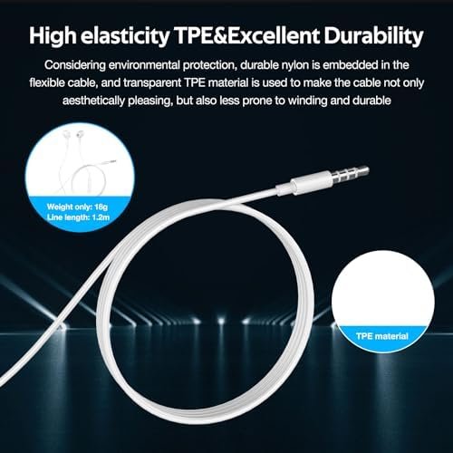 【𝐄𝐱𝐜𝐞𝐥𝐥𝐞𝐧𝐭 𝐝𝐮𝐫𝐚𝐛𝐢𝐥𝐢𝐭𝐲】The inner core copper wire and outer coating of the headphones wired are made of high-quality TPE material to ensure the stretchability of the wire. The most easily broken terminal part of the wired earphones is reinforced with SR tubes to prevent breakage. In addition, high-quality TPE material can also provide cable durability, making it less prone to entanglement and easier to store.