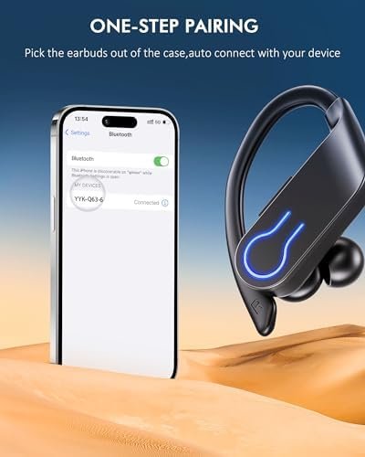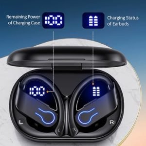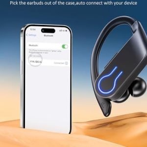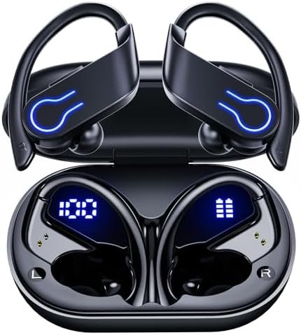 Ear Hook Design&IP7 Waterproof:The wireless Bluetooth earbuds features a sporty ear hook design. The curve of the ear hook combined with the ergonomic design makes it more comfortable for you to wear. Together with the ear hooks, the sport ear buds won’t fall out even when you are exercising. It stably rests in your ears, allowing you to enjoy the music while exercising.IP7 waterproof allows you not to worry about the earbuds failure caused by sweat.