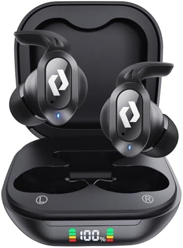 【LED Power Display & 64 Hours Playback】: The digital LED power display on the outside of the case is used to display the power of the charging box and earbuds. When charging the charging box, the LED light will start flashing from 1 to 100. Each earbud provides up to 8 hours of listening time on a single charge, and the charging case can recharge the earbuds an additional three times. This allows you to take turns using the earbuds, offering a total of 64 hours of music enjoyment.