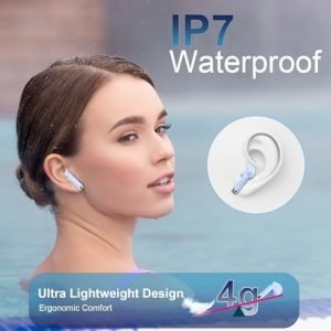 Intelligent Touch Control and IP7 Waterproof: The wireless earbud in ear boast a highly responsive touch interface, minimizing pressure on your ears when interacting with various functions. With intuitive touch controls, you can switch music, pause/play music, adjust the volume, answer calls and activate voice assistants. This means no more fumbling for your phone or dealing with physical buttons, just effortless, seamless control at your fingertips. And featuring an IP7-rated waterproof function, our wireless earphones are protected against damage from sweat and light rain.