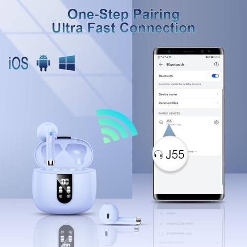 Bluetooth 5.3 Technology and One-Step Auto Pairing: Adopting advanced Bluetooth 5.3, wireless earbud support HSP HFP A2DP AVRCP, which offer you an unparalleled audio experience with faster transmission speed, stronger connection stability, and longer range of bluetooth. Taken from the charging case, bluetooth headphones will be paired with each other automatically, and just hitting on bluetooth list J55 on your device to connect. In a matter of seconds, you are in euphonic music world.