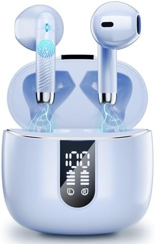 40Hrs Battery Life & Digital LED Display: The battery capacity of these bluetooth earbud allows you to enjoy your music and calls for hours on end. With a fully charged battery, our wireless headphones bluetooth provide up to 8 hours of continuous playtime. The portable charging case extends the total playtime to a remarkable 40 hours. The Type-C charging port ensures faster and easier charging. The built-in digital LED screen displays the remaining battery percentage of the charging case in real-time, and the LED indicator bar shows the charging status of each earbud.