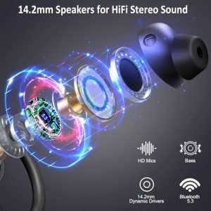 【Smart Touch Control, Refined Appearance】Multi-function touch panel on each Bluetooth earphone helps to play, pause, adjust volume, answer, end calls, activate siri and google assistant more convenient. In addition, the appearance of the sport earphones is made of 100% glossy coating, with smooth lines, comfortable touch and exquisite appearance.