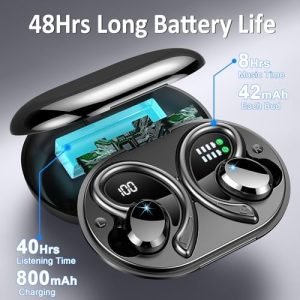 【10 Minute Quick Charge, 2 Hours of Playback】Our wireless earphones over ear charging case with LED power display shows remaining power in percentage. Charging case presents its battery from 1%-100% to let you know the current power status of your running headphones and charging case anytime anywhere. Up to 6-8 hours playtime of normal usage on a single charge and boost that to 48 hours playtime with the 800mah compact charging case. With type-C quick charge, it only takes 1.5 hrs to charge the case.