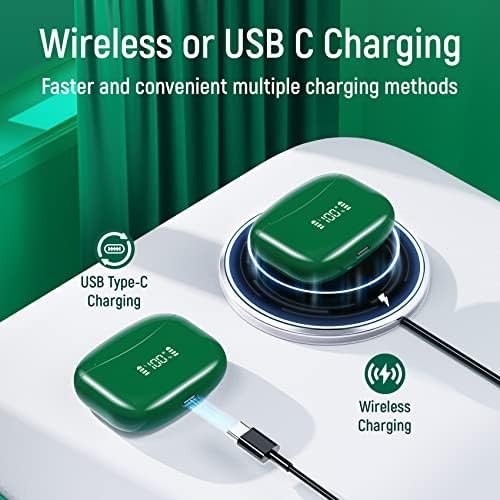 Dual Charging of Wireless & Type C: The wireless headphones support wireless and USB Type-C fast charging. For wireless charging, just put the case on the wireless charging pad, and keep the led display facing up. Meanwhile, bluetooth headphones come equipped with a USB Type C cable, you just use it and a charging adapter(not included) to charge the case. Both charging methods take just 1 hour to charge the case with 100% power.The number on the right screen will flash when the case is charging.