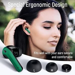 Comfort Fit & Easy to Carry: The earbuds are ergonomically designed and come with 3 different sizes of soft ear tips that fit 99% of the contours of the ear canal. When you wear the earbuds will be very comfortable and not easy to fall off. You can use it in many scenarios, such as running, walking, working, etc. Each earbud is only 0.008 pounds and the charging case is only 0.07 pounds, making it easy to put in your pocket or backpack. The material of the case is smooth and easy to clean.