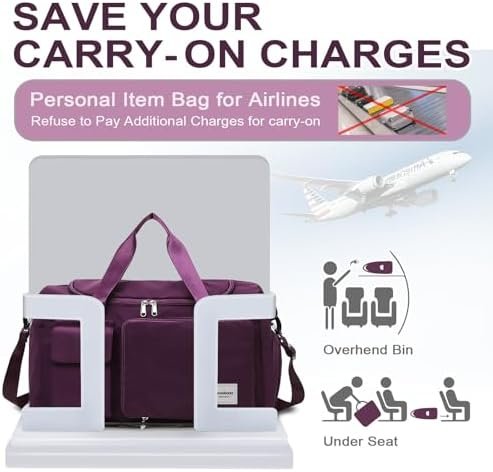 ✨Multiple carrying ways: This travel tote bag is equipped with a sturdy and comfortable handle (the height of the handle is 7.1 inches) and an adjustable shoulder strap(the length of the strap is 22-39 inches), you can choose to carry the bag by hand or on the shoulder. If you have a spinner suitcase or other rolling luggage, lighten up the load and slide the back luggage sleeve over your luggage handle for convenient and comfortable carrying. Free your hands and enjoy your trip.