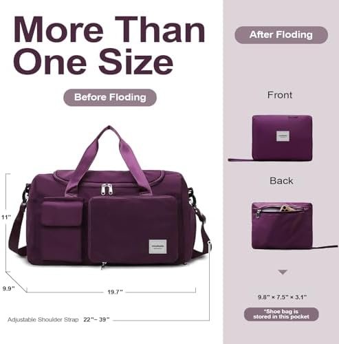 ✨Multiple Sizes and Travel Friendly: WOOMADA large capacity travel bag can be folded according to your needs. Portable folded size: 9.8×7.5×3.1inches (It is a good idea to put it in your luggage bag as an extra bag); Travel large capacity size:19.7×9.9×11inches(equipped with 22-39 adjustable shoulder strap). It can easily hold your clothes, shoes, laptop, books, toiletries, or cosmetics.