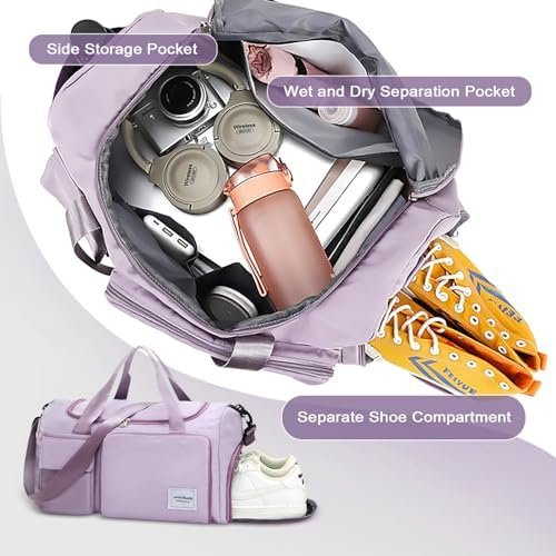 ✨Separate Shoe Compartment & Extra Shoe Bag: The side of weekender bags for women has a separate shoe compartment(14.9×7.8×7.1 )and an extra shoe bag. It can easily accommodate shoes of various sizes, including sneakers, sandals, and heels. You can even put dirty clothes in it, everything according to your preference.