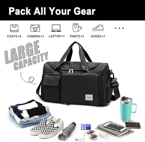 ✨Dry & Wet Separated: Our duffel bags are made of high-density waterproof material and specially designed wet bags, helping you separate wet and dry items. You can put wet clothes, wet towels, or toiletries for travel in the middle wet and dry separation bag, so you don’t have to worry anymore and are more comfortable in daily fitness and travel. This is your perfect choice as a gym bag and a weekender bag.