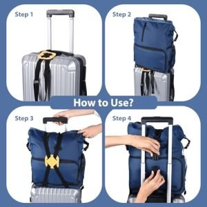 Easy to Use: The luggage straps for suitcases add a bags are very convenient to strap your laptop backpack to your roller suitcase. And you can wheel it around instead of wearing the backpack on your shoulders all the time. What’s more, it’s super easy to take on and off.