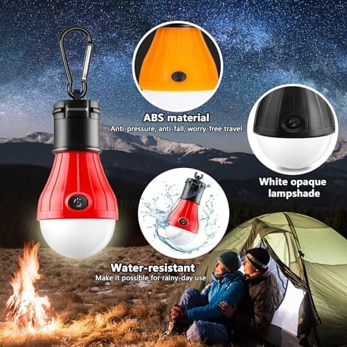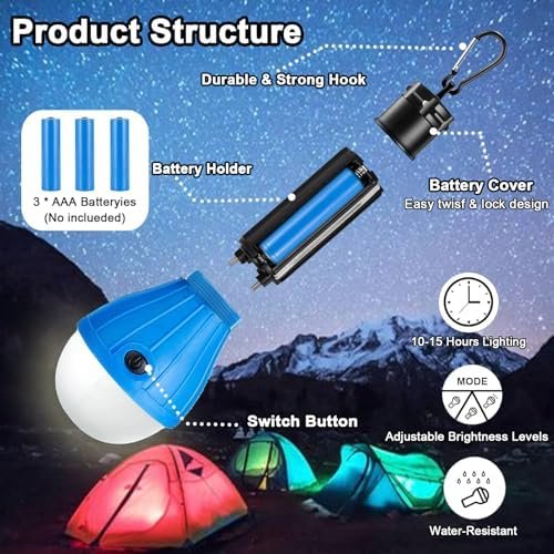 💡Durable & Waterproof: Our camping lights are made of ultra-durable ABS plastic, which is waterproof and won’t break easily. The camping tent light is powered by 3 AAA batteries and can easily light up the entire campsite. Please note that the product does not include batteries.