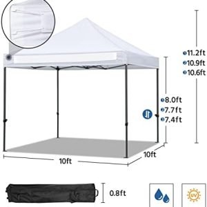 Adjustable Height: There are three holes for height adjustment on each tubular column of this commercial pop-up canopy. The adjustable height ranges from 227 cm/ 7.4 ft to 245 cm/ 8 ft. You can freely change the height of the canopy according to your needs