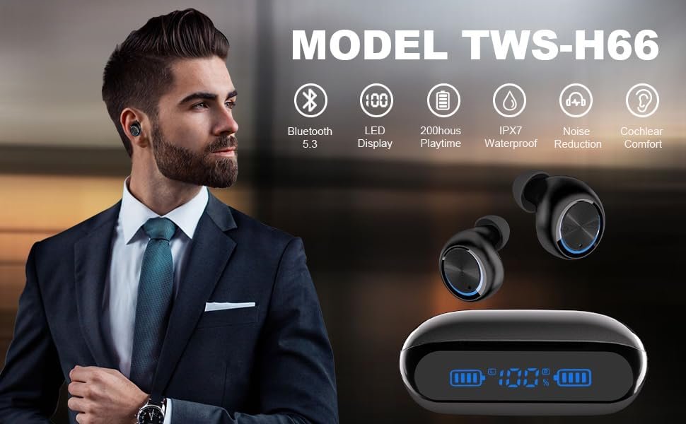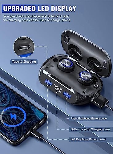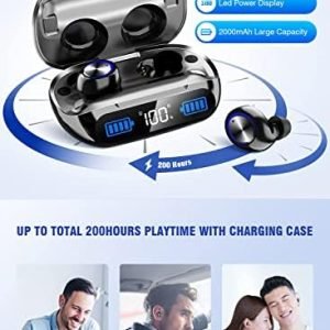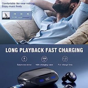 The highly acclaimed innovative version of the in-ear Bluetooth headset will land in the United States in 2023!! 【200 hours of ultra-long continuous operation & high-end LED battery remaining display】Independently developed innovative power-saving technology and high-performance battery, the headset can be charged once It can be played continuously for about 6-7 hours or more. It comes with an integrated 2000mAh charging and storage case. Together with the charging box, it can be played for up to 200 hours, so you can use it with confidence all day long.