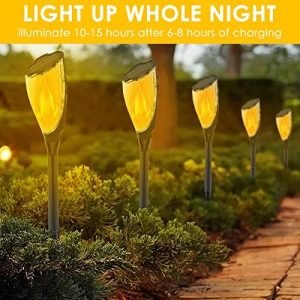 WATERPROOF: Designed for all seasons, your outdoor solar flame lights sport an IP65 waterproof rating. Enjoy captivating lighting that stands strong against any weather.