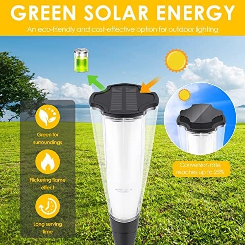 REALISTIC FLICKERING FLAME: Enhance your garden with our solar torch lights, creating a snug feel with realistic flickering flames. Ideal for both serene evenings and lively get-togethers.